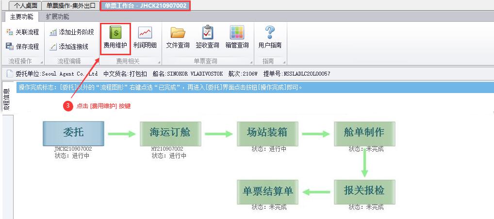 3、点击“单票工作台”上的 [费用维护] 按键,打开“费用信息”界面。