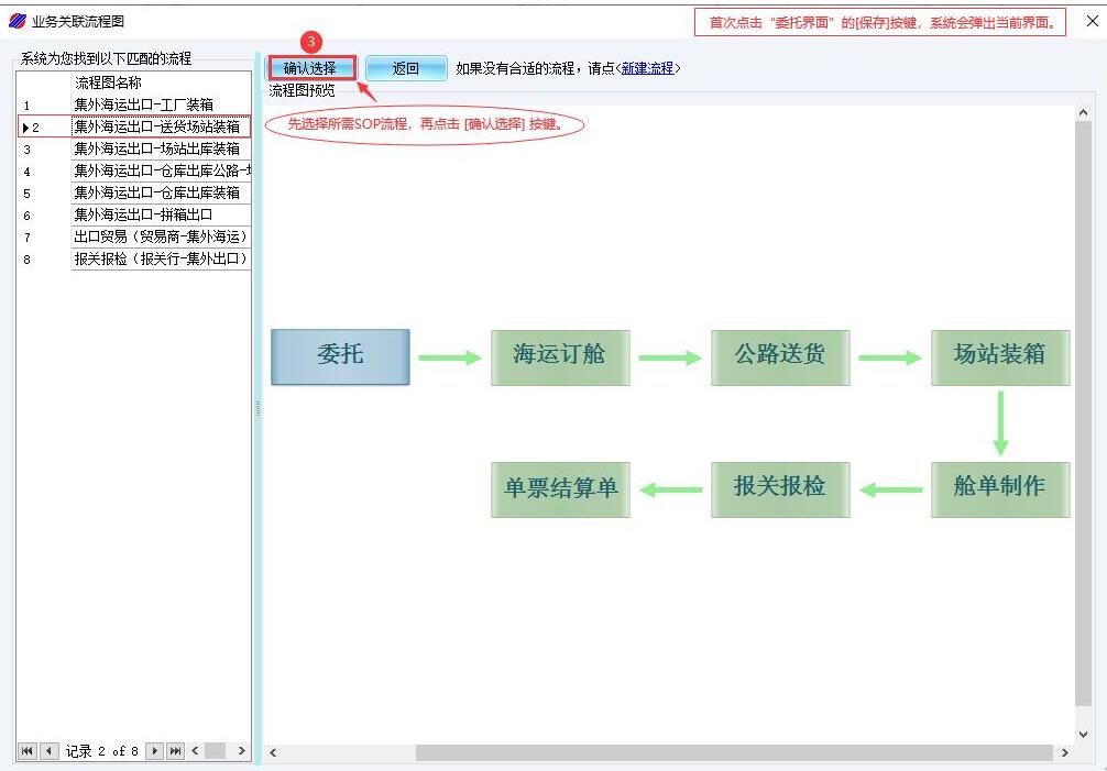 3、先选择所需SOP流程,再点击[关联流程图]按键。