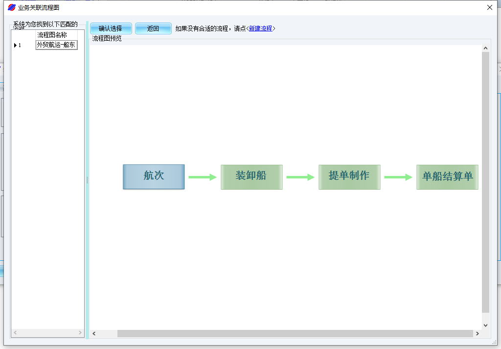 2、若“船舶属性”选择“船代”,则:(1)“货物概要” 录入并保存;(2)绑定流程,进入“单船工作台”;(3)点击流程图[航次],录入并保存“基本信息”。