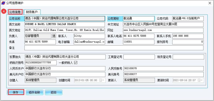(4)录入并保存<当前用户公司信息>
