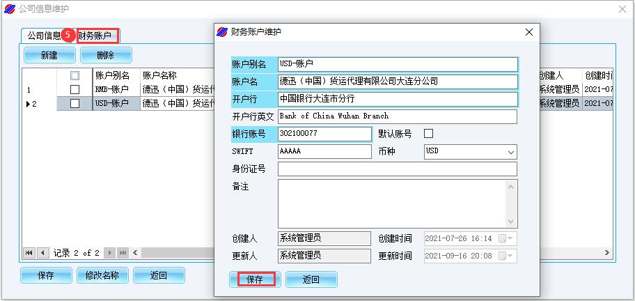 (5)录入并保存<当前用户公司账户信息>