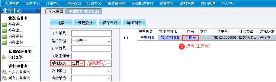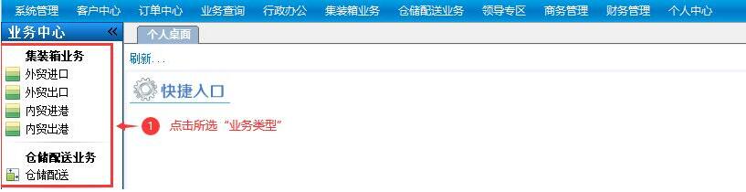 1、 在个人桌面左侧导航栏,点击“所选业务类型”。