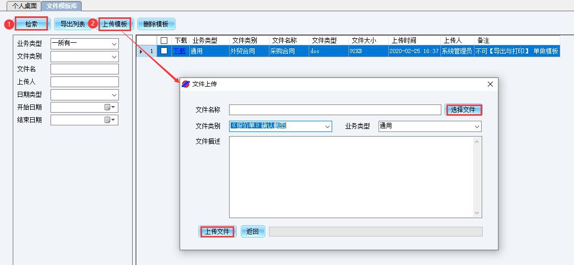 如果这些模板不能满足用户需求,可通过点击【上传模板】,上传用户自己设计的文件模板。