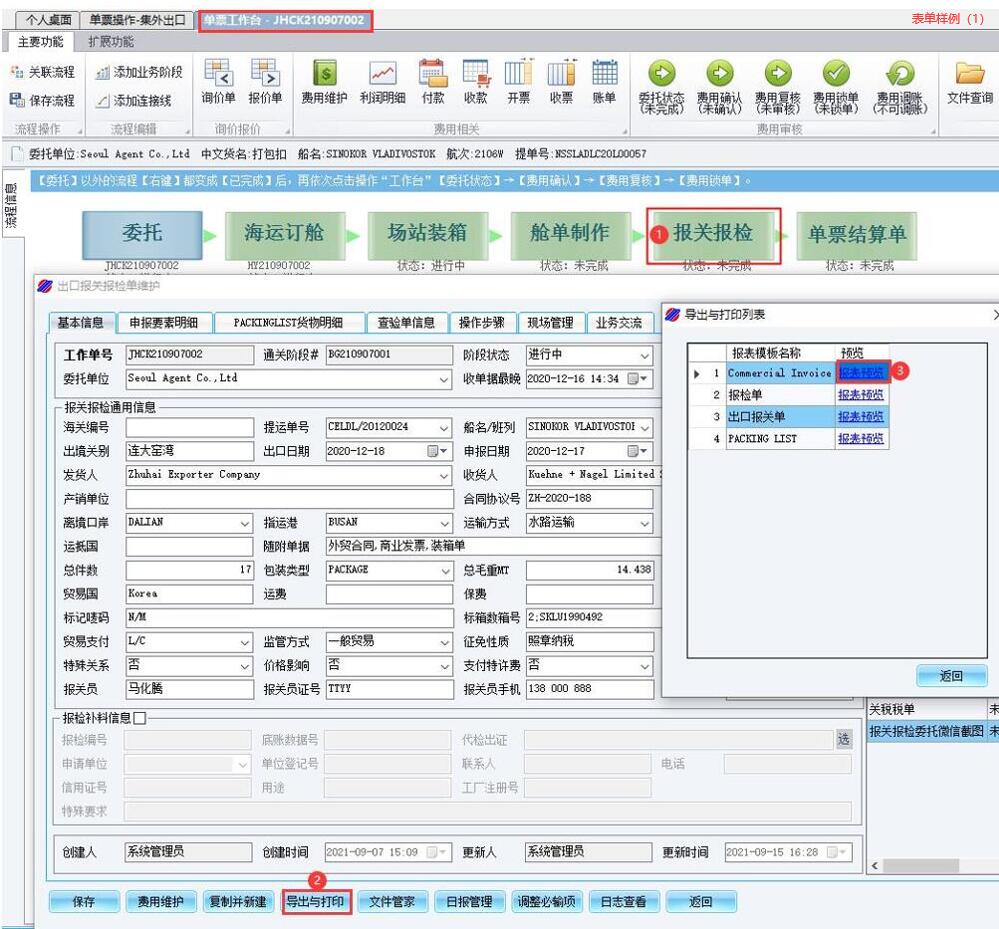 航运通软件内置的文件模板分为两种,一种是用户从“文件模板库” [下载]后自行编辑的文件模板;另一种是用户在“单票工作台”打开业务阶段[流程图形],点击【导出与打印】,系统直接生成的“表单类”文件模板。