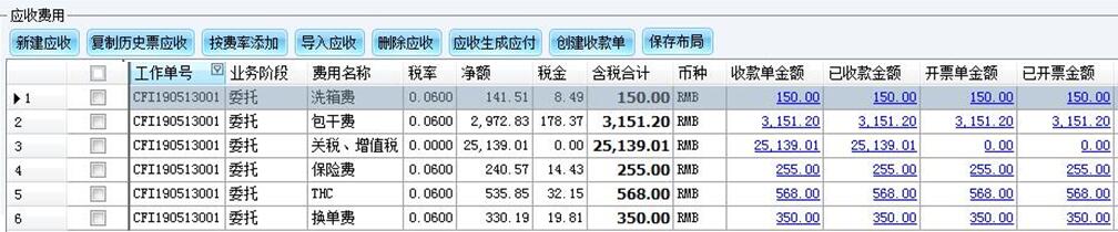 如果某票业务的应收/应付费用跟前几票的费用基本相似,则可利用【复制历史票应收/应付】功能,直接复制某票业务的应收/应付费用。