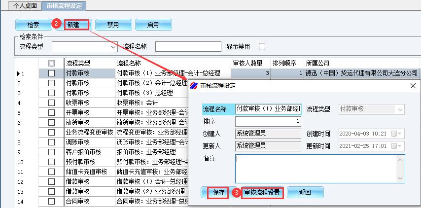 1、系统管理-系统信息设定-审核流程设定