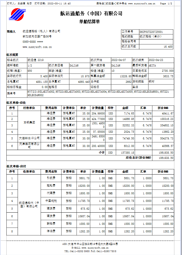 无论是物流航运,还是进出口贸易,每票业务或每个航次操作完成,公司管理都需要“单票结算单/单船结算单”。