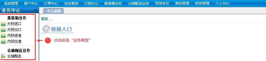 (1)在个人桌面左侧导航栏点击所选“业务类型”。