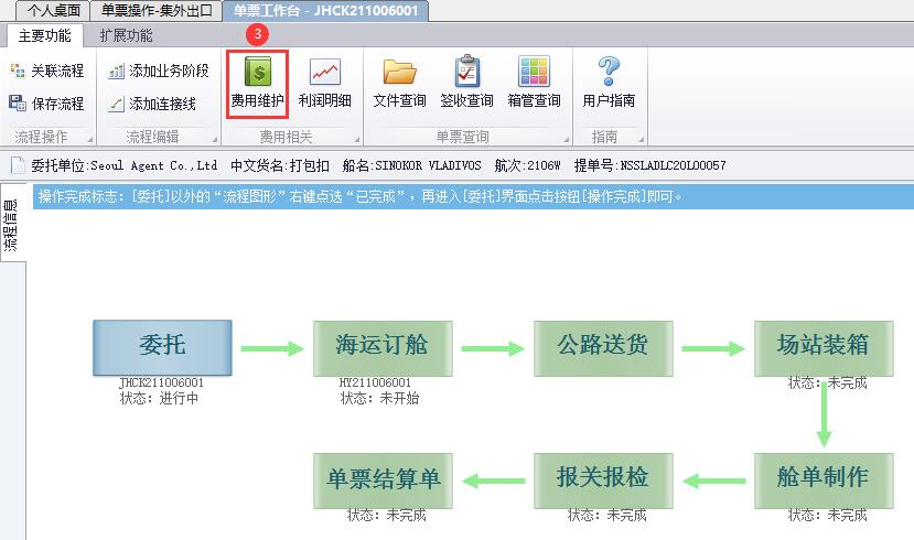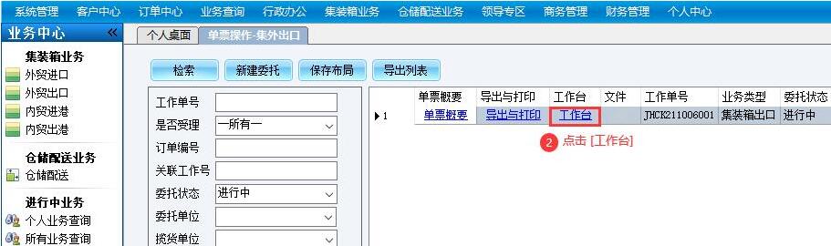 (2)点击“单票操作列表”所选业务条目中的 [工作台]。