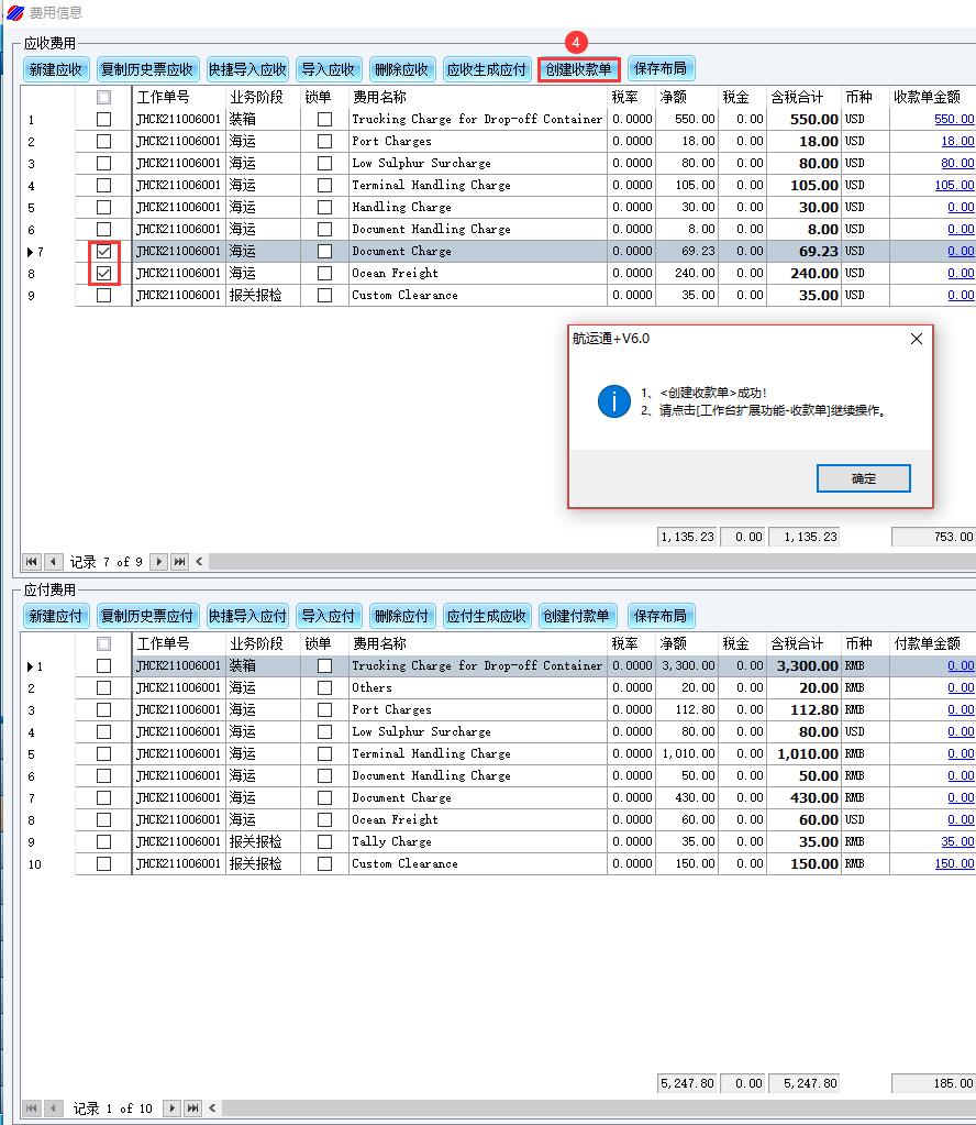 (4)选择“已录入的应收费用条目“,再点击 [创建收款单] 按键。