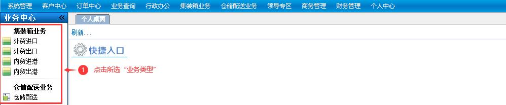 1.1 在个人桌面左侧导航栏点击所选“业务类型”。