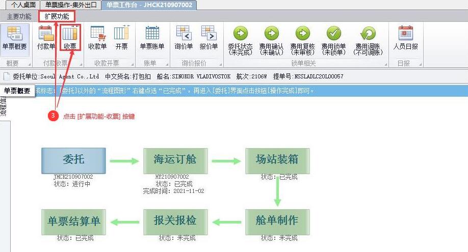 收票单状态分为“未收票、已收票、作废”,实际业务操作中分为“单票业务收票单、多票业务收票单”,具体操作步骤如下: